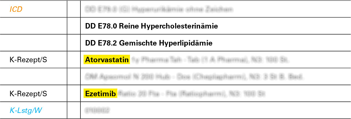 Mit Ihrer Praxis-EDV können Sie sehr schnell und einfach Ihre Dauertherapie-Patient:innen identifizieren, die noch auf eine lose Kombination aus Ezetimib und Atorvastatin eingestellt sind.