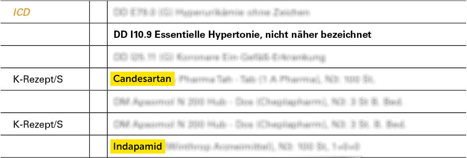 Mit Ihrer Praxis-EDV können Sie sehr schnell und einfach Ihre Dauertherapie-Patient:innen identifizieren, die noch auf eine lose Kombination aus Candesartan und Indapamid eingestellt sind.
