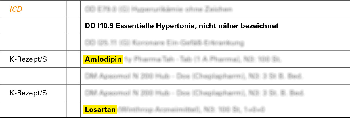 Mit Ihrer Praxis-EDV können Sie sehr schnell und einfach Ihre Dauertherapie-Patient:innen identifizieren, die noch auf eine lose Kombination aus Losartan und Amlodipin eingestellt sind.