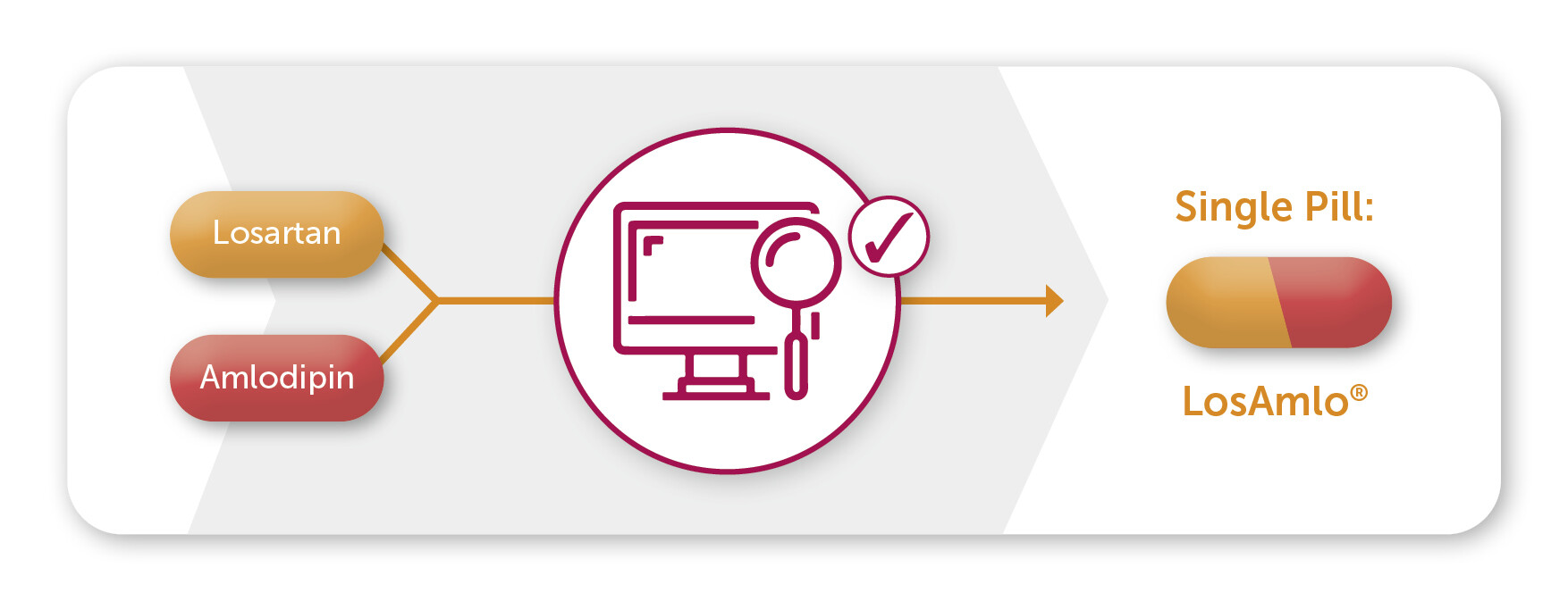 LosAmlo® bietet Ihnen die Möglichkeit, Ihre patient:innenindividuelle Therapieentscheidung für die Substanzkombination Losartan + Amlodipin als Single Pill-Therapie fortzuführen.