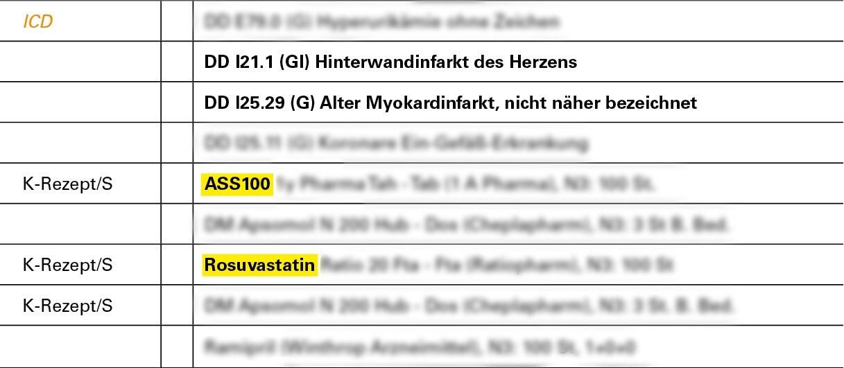Mit Ihrer Praxis-EDV können Sie sehr schnell und einfach Ihre Dauertherapie-Patient:innen identifizieren, die noch auf eine lose Kombination aus Rosuvastatin und ASS eingestellt sind.