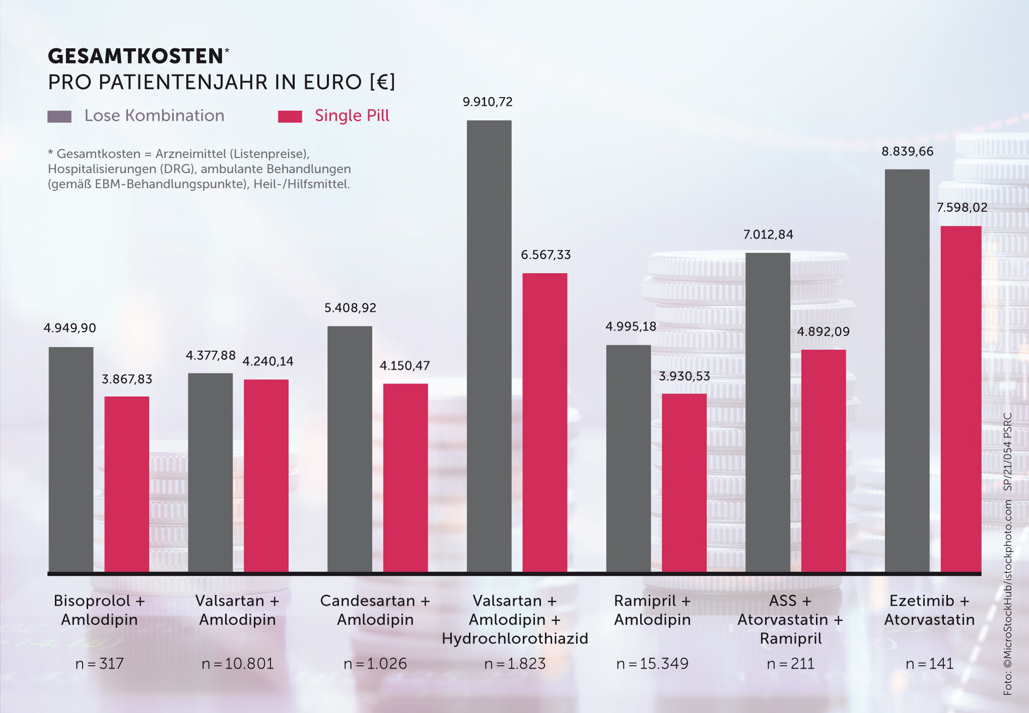 Bei allen Kombinationen konnten geringere Gesamtkosten zugunsten der Single Pills im